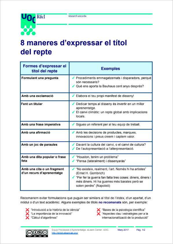 Quin títol pots donar al repte? Inspira’t en exemples reals i troba alternatives a l’ús de la interrogació per motivar la resolució de reptes.