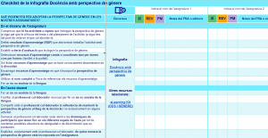 Instrument que facilita el seguiment de les tasques indicades a la infografia Docència amb perspectiva de gènere, això és: elements que cal tenir en compte per a la incorporació de la perspectiva de gènere a la universitat així com aspectes relacionats amb el disseny d’assignatures i l’acció docent.