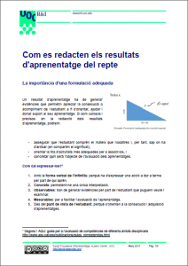 Sovint ens trobem amb la dificultat d’establir el lligam entre la competència i l’activitat que plantegem fer a l’estudiant. Aquest vincle és el resultat d’aprenentatge i, per tant, si som curosos i precisos en la seva redacció podrem garantir que l’estudiant comprèn el mateix que nosaltres a la vegada que li facilitem informació sobre l’avaluació. Conèixer aquestes orientacions i eines ens ajudarà a abordar aquesta tasca amb seguretat.