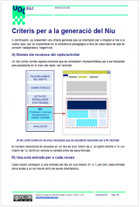 Us presentem recomanacions i pautes per a crear Nius i associar-los a les activitats que heu dissenyat. Alguns dels elements que heu de considerar són: la varietat en la tipologia de recursos, l’estimació del temps mínim de dedicació recomanat (TMDR) o bé la seva rellevància, entre d’altres.