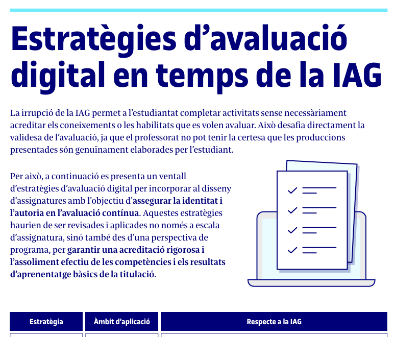 Aquest recurs presenta diverses estratègies per incorporar al disseny d’assignatures amb l’objectiu de garantir la identitat i l’autoria en l’avaluació contínua.