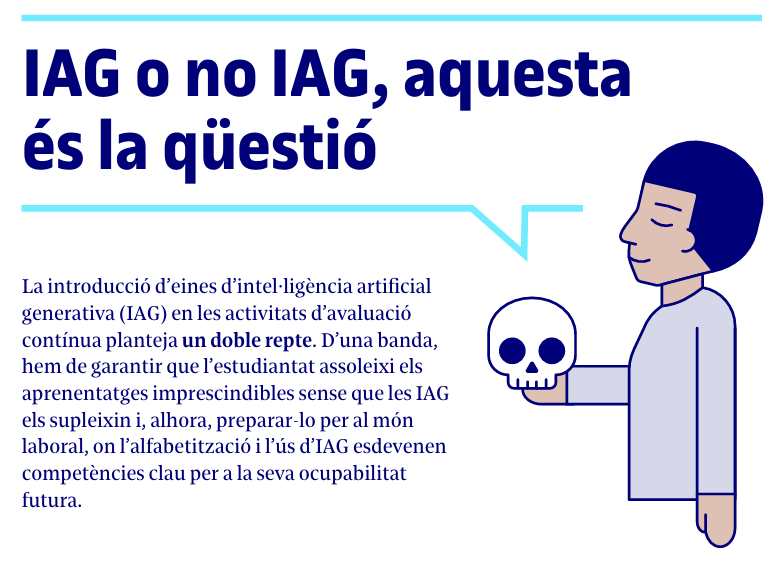 El recurs aborda el doble repte al qual s’enfronta el professorat en el moment d’incorporar la IAG a les activitats. Com garanteix que l’estudiantat adquireixi els aprenentatges essencials sense substituir-los per la tecnologia i, alhora, el prepara per a l’ús competent d’aquestes eines en el món professional.