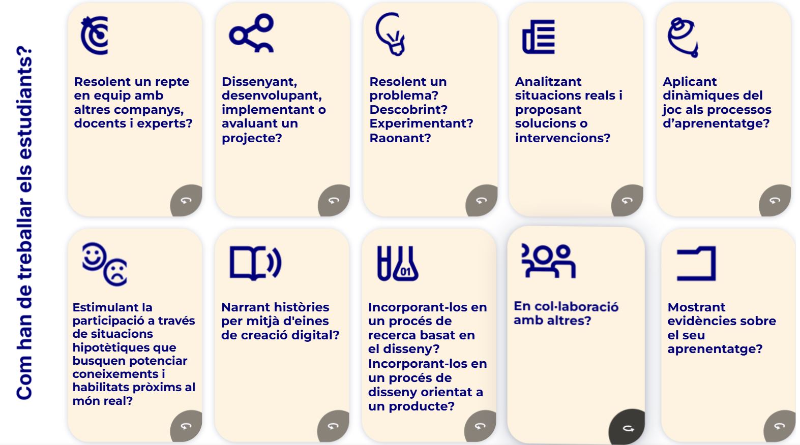 Aquesta infografia proporciona, un resum de 10 metodologies actives amb enllaços a guies específiques sobre cadascuna de les metodologies actives.