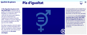 La Unitat d’Igualtat de la UOC ha coordinat la creació d’un Pla d’igualtat, amb més de cent mesures que s’estructuren en cinc eixos estratègics: docència, investigació, comunicació, organització i seguiment i avaluació.