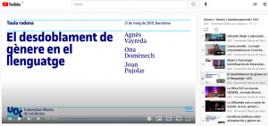 Aquest recopilatori de contingut audiovisual de la UOC sobre gènere aplicats en diferents àmbits, dona a conèixer les iniciatives, projectes, conferències i tallers en perspectiva de gènere que dur a terme la Universitat.